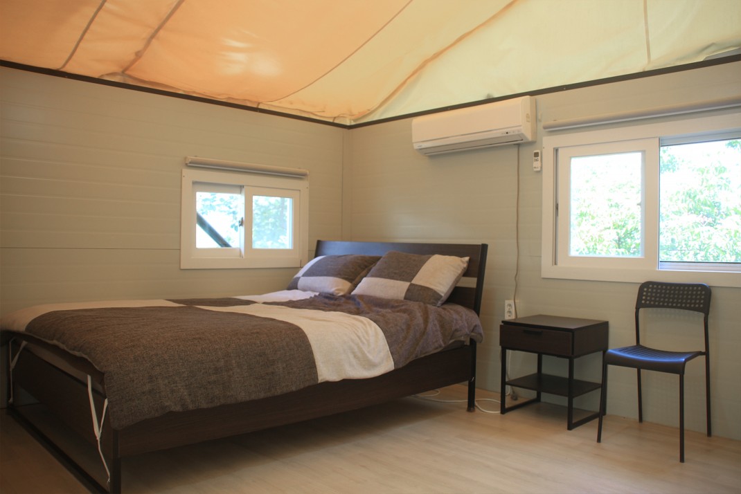 D동-덕룡정 본문 / 방 정보 객실명 형태(스타일) 크기 인원(기준/최대) D동-덕룡정 글램핑(침대) 평 4/5 가격 정보 비수기 준성수기 성수기 추가요금 주중 금요일 주말 주중 금요일 주말 주중 금요일 주말 80,000원 80,000원 120,000원 80,000원 80,000원 130,000원 120,000원 130,000원 140,000원 10,000원 시설안내 침대 : 4인 (최대 5인) 인원 추가시 침구류 제공 기타 사항 - 숯+그릴+화로 제공시 1만원(숯불 인화인력 제공 시 1만원 추가) / 참나무 장작 10키로 1박스 1만 3천원 판매 - 기준인원 초과시 1인당 1만원(36개월 이상) 목록