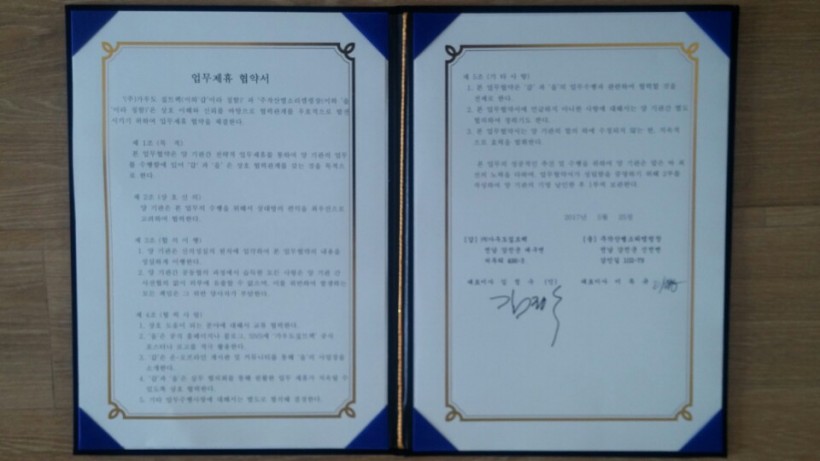 2017년 5월 27일부터 (주)가우도짚트랙과 업무제휴협약을 체결하고